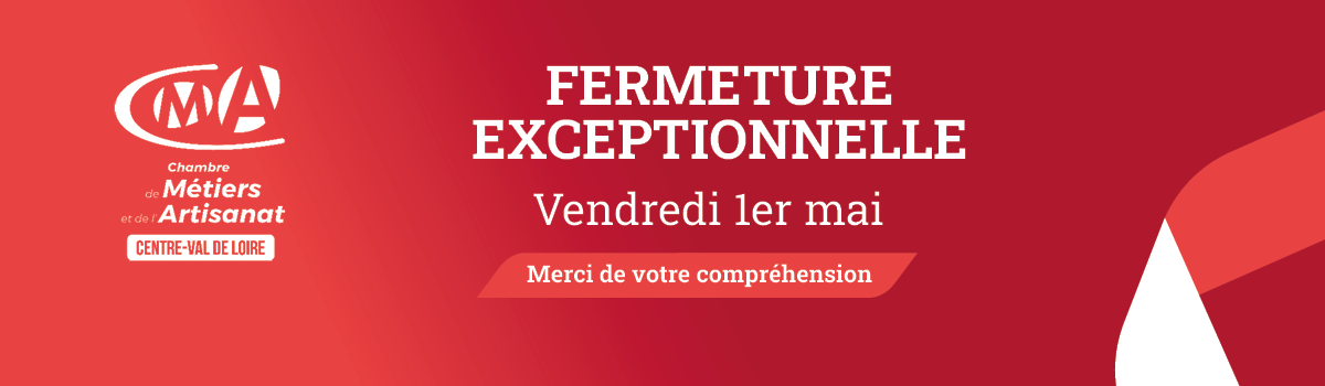 La Chambre de Métiers et de l’Artisanat Centre-Val de Loire est fermée le vendredi 1er mai 2026.
